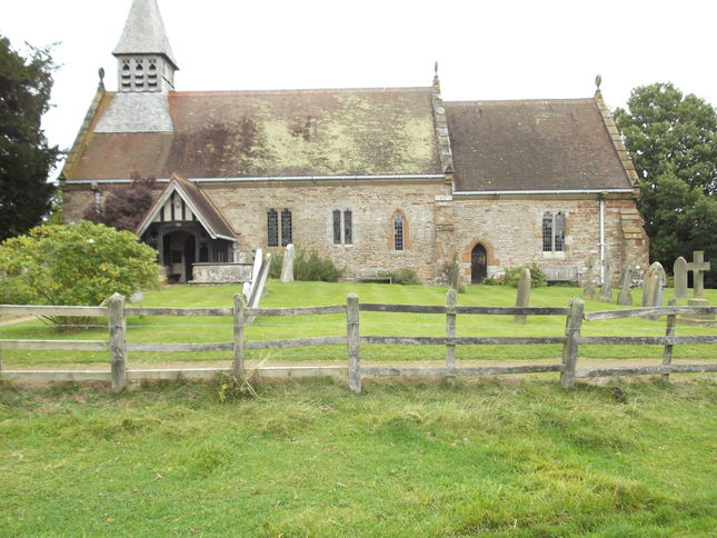 [3] Continue ahead through a kissing gate, climbing slightly uphill along a path directing you to Preston Bagot Church (B). At the top of the climb pass through another kissing gate. Keep ahead, passing the church on your left hand side.