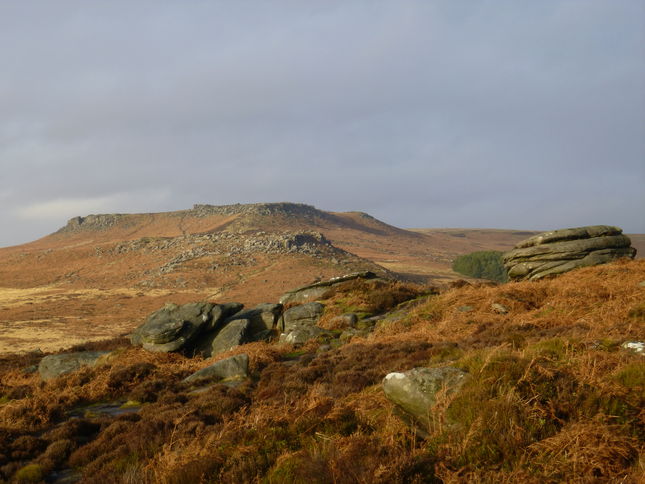 • Higger Tor with Carl Wark in front, soon after leaving Fox House.