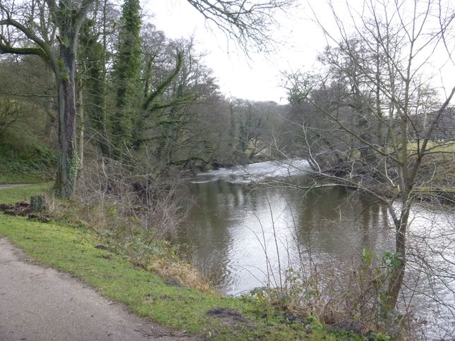 • The path alongside the River Derwent on the approach to Harper Lees.