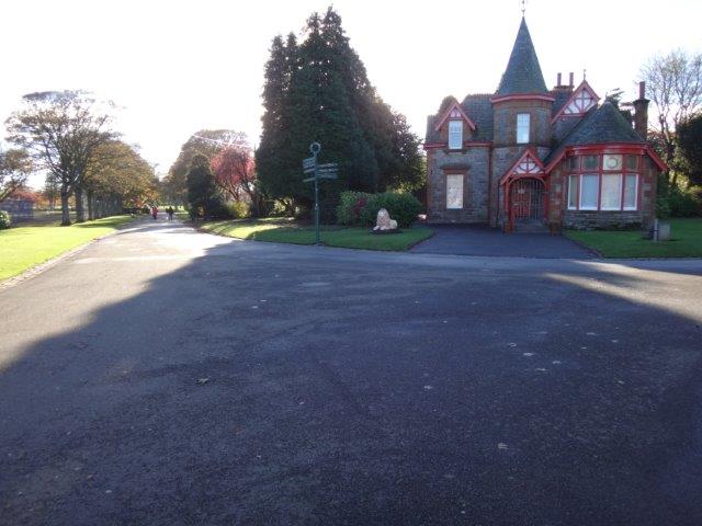 [1]  As you enter the main entrance of Beveridge Park, take the drive to the left of the facing house - called The Lion House. Provost Michael Beveridge, Provost of Kirkcaldy, bequeathed money for the purpose of providing this park.  The park opened in 1892. Follow this drive until exit gates are reached, after passing a car park on your left. Do not exit the park, but follow the drive around to the right until you see a park exit and zebra crossing on your left.   Exit the park, cross Zebra Crossing and into Balwerie Crescent (a dead end road). At end of this road, turn left.  Go through tunnel, under the railway line.  This tunnel was created when the railway was built, to ensure that clay workers had access from their homes in the town, to the pits on the west side of the railway. Exit the tunnel, turn right and cross the road at the Pelican Crossing.  After crossing road, turn right and follow road, passing a football ground on your right.