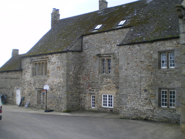 [2] Cross the road and turn left for 50m. Go right over a stile and go diagonally across the field passing a telegraph post. Bear left by a stone wall and go through a farm gate by a tree. Continue through the next field with a hedge on your right. Cross a stile and continue to follow the hedge on your right to reach a gate onto a farm access track. Go straight ahead across this track and through a gate on the left of the farm buildings. Pass a garden on your right and continue straight ahead through the next field. Turn left after the next gate and go downhill with a wood on your left. Cross a stile and turn right round the edge of a field to reach a barn. Cross the stile on your right and follow the path to the North of Bradley Hall. (B) Bradley Hall dates back to the 14th century. A licence to crenellate was given in 1431. The only parts of the old hall remaining are the ruins to the west of the present 18th century building. The site is moated and there are remains of fishponds between the building and the A689. There are supposed to be tunnels running from the Hall.
