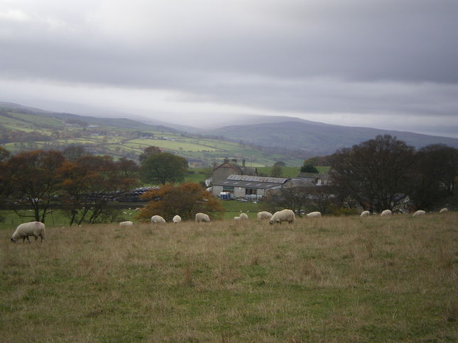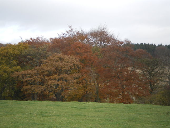 [4] Turn right on the road by the church and then left up a track opposite the far end of the church. Continue straight ahead up a footpath where the track bears right. On reaching a road turn right and take a footpath on the right side at the end of the road. Bear slightly left up the field at the end of the path and then slightly to the right on a faint track across the next field. Cross a stile into a wood and descend a steep path to cross a stream and ascend the bank on the far side. Go straight ahead up the next field with the fence on your right and continue straight through the wood at the top to reach a road. (To shorten the walk, you could turn right at this point and follow the road back to the A68, and then right along this to the start).