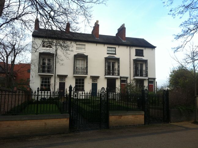 [4]  Carry on walking up New Walk and pause opposite the Museum. On your left and set back from the walkway you will see a row of four attractive white Regency houses with elaborate black wrought iron balconies.