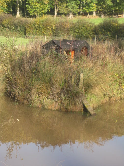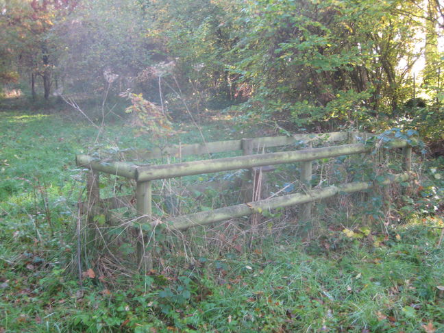 [3]. Turn right to follow road round a left hand bend and then where road bends right continue straight ahead down narrow footpath alleyway. In field bear diagonally left to find footbridge in far hedge near the right hand end of wood. In next large field follow edge of wood on your left, soon crossing a ditch on the way, to field end and then turn right almost back on yourself to diagonally cross same field to footbridge in centre of far hedge. Now follow hedge on your right, some of which is a permissive path, through a gate and uphill to an access track and eventually the A449 main road. Turn right downhill along road and soon turn right again on access driveway to Velcourt. Take left-hand driveway and follow round to Velcourt parking. Now turn right across field to left hand corner of wood and green track, with a pond on the left, through edge of wood.