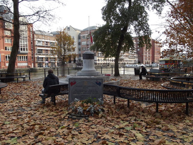 Follow Redcliffe Way across the bridge. Cross 'The Grove' to the Hole-In-The-Wall Pub then turn right to walk along the cobbles of Welsh Back passing the c. 1640 Llandoger Trow pub tucked away on your left and the Merchant Navy Seamens' Memorial on your right, then continue to the end where you see St Nicholas Church. The Hole-In-The-Wall pub was believed by some to be the model for the Spyglass Inn as described in 'Treasure Island'. Its original 18th c. name was the Coach and Horses but it probably gets its present name from the tiny window in the porch or from the way that men escaped the press gang! You will also pass a floating restaurant called 'The Spyglass'.