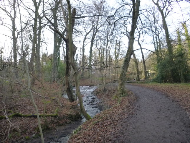 [7] When you reach Abbeydale Road turn left on grassy area and re-enter wood at lst footpath on your left. Take the path that bears right (signed to Abbey Lane) - unless you would like better views of the site of the remarkable miniature railway, and then retrace your steps. At the path junction go ahead to next fingerpost and follow the sign bearing left to Abbey Lane. At next junction bear right (signed Abbey Lane) to skirt the bird sanctuary on your left. Stay on the wide track to turn down left on a short narrow surfaced path to turn left again at the bottom. Continue to 2nd set of fingerposts where - unless you wish to visit the Discovery Centre/Cafe, in which case follow the signs then retrace your steps - you continue uphill on a wide track . At path junction bear right through gate and at next gate/junction bear right down steps to go over a footbridge and bear right to leave wood through a gap in the stone wall. Keep right ahead along sports field boundary and when you see a gap between conifer trees turn right into woodland and bear left along path parallel to stream. Follow this path to eventually return to sports field and exit ahead to cross Hathersage Road to make your way to the entrance to Whirlowbrook Park. Go past the entrance and look out for a fingerpost on your left just after the houses. Turn up here along path to back of house and continue, passing a pond to eventually come to a wide path junction. Turn left here to go over the bridge and retrace your steps to the car park.