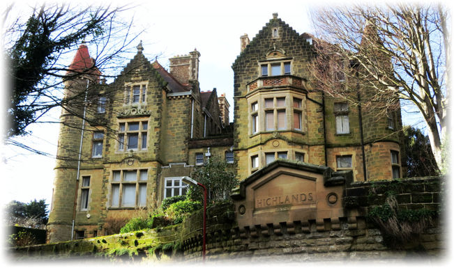 [3] Turn right at the next junction down  Highlands Drive (Note the ventilation shaft for the railway at the junction.  It must have been interesting in the days of steam trains.) Have a look at the great edifice of the Highlands on your right.  It is now in flats.