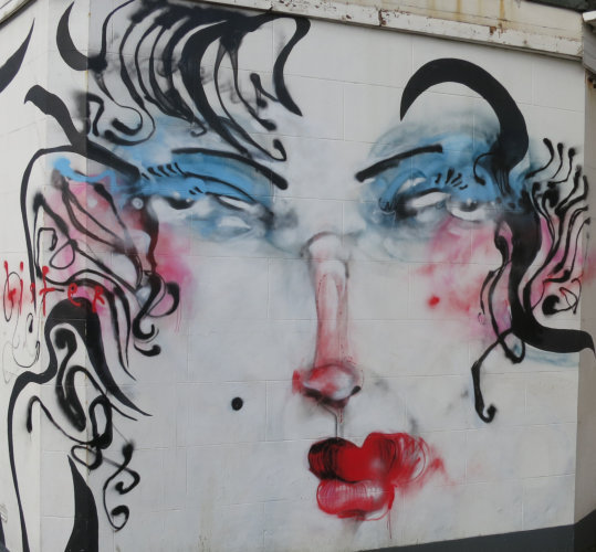 Take the first left into Warrior Gardens and walk up about 10 metres. Notice, on the wall of the building on the corner is our first piece of street art.  There is a  fortress on your right..  Locals suggest that it was either a water treatment plant or something to do with electricity.