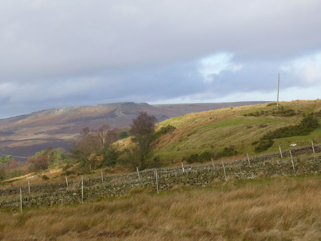 [4] Turn left into Strawberry Lee Lane and follow it round until it reaches a small car parking area on the left. Go through a gate ahead and continue along the path into (D) Blacka Moor Nature Reserve, a Site of Special Scientific Interest. Follow the path as it starts to climb steeply with a brook down to the left. At a junction keep left and continue up the side of Blacka Hill until you reach and go through a gate in a wall.