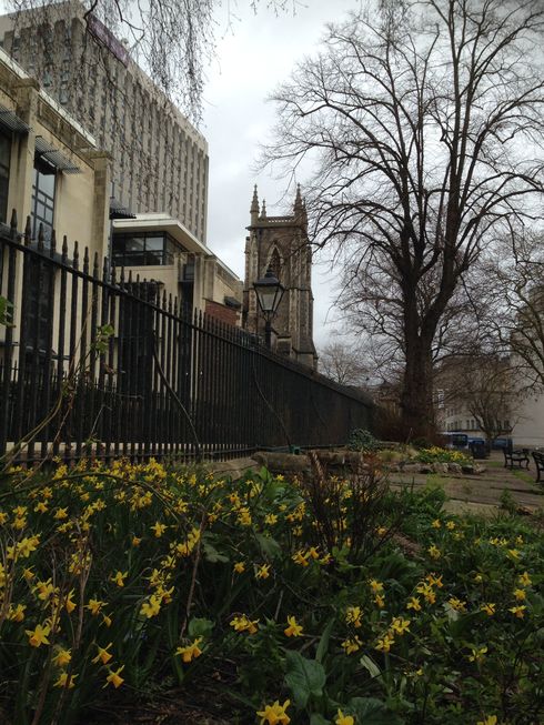 [4] From here continue straight ahead on to Nelson Street, passed 'The Island' (art space) on your left - site of the former Bridewell Police Station. You'll then continue straight ahead into Broadmead and the central shopping street of Bristol. Turn left soon after Marks and Spencer into a shopping parade (a Cornish Pasty Company is on the corner) and go through the parade. You come out near the back of Marks and Spencer. Turn left and then turn right around the back of Primark. This takes you up to your starting point.
