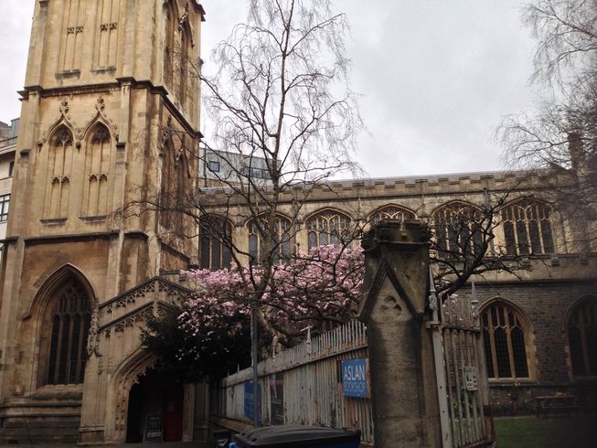 [2] Take Johnny Ball Lane and continue to the bottom. Be careful; this is a narrow secluded alleyway and best avoided if nervous or at night. The lane comes out on Lewins Mead. Turn right at the bottom. You'll see a sign saying 'Centre Gate Passage'. Continue under this passage way. You'll pass Christmas steps on your right. When you exit the passage way, cross at the first traffic lights you come across and then cross the road again. You'll find yourself on St Augustine's Parade; 'The Centre'. Turn right, heading away from the Blue Arrow Recruitment Services building. Soon you will come across St. Stephen's Avenue on your left. Take this Avenue past St. Stephen's Church and garden and then turn immediately left down the alleyway. The alleyway contains a small number of steps. Turn right at the end on to St. Stephen's Street. Then turn next left and immediately left again just the other side of Stanfords Book Shop. The lane is called Leonard Lane and is signposted 'CentreSpace'